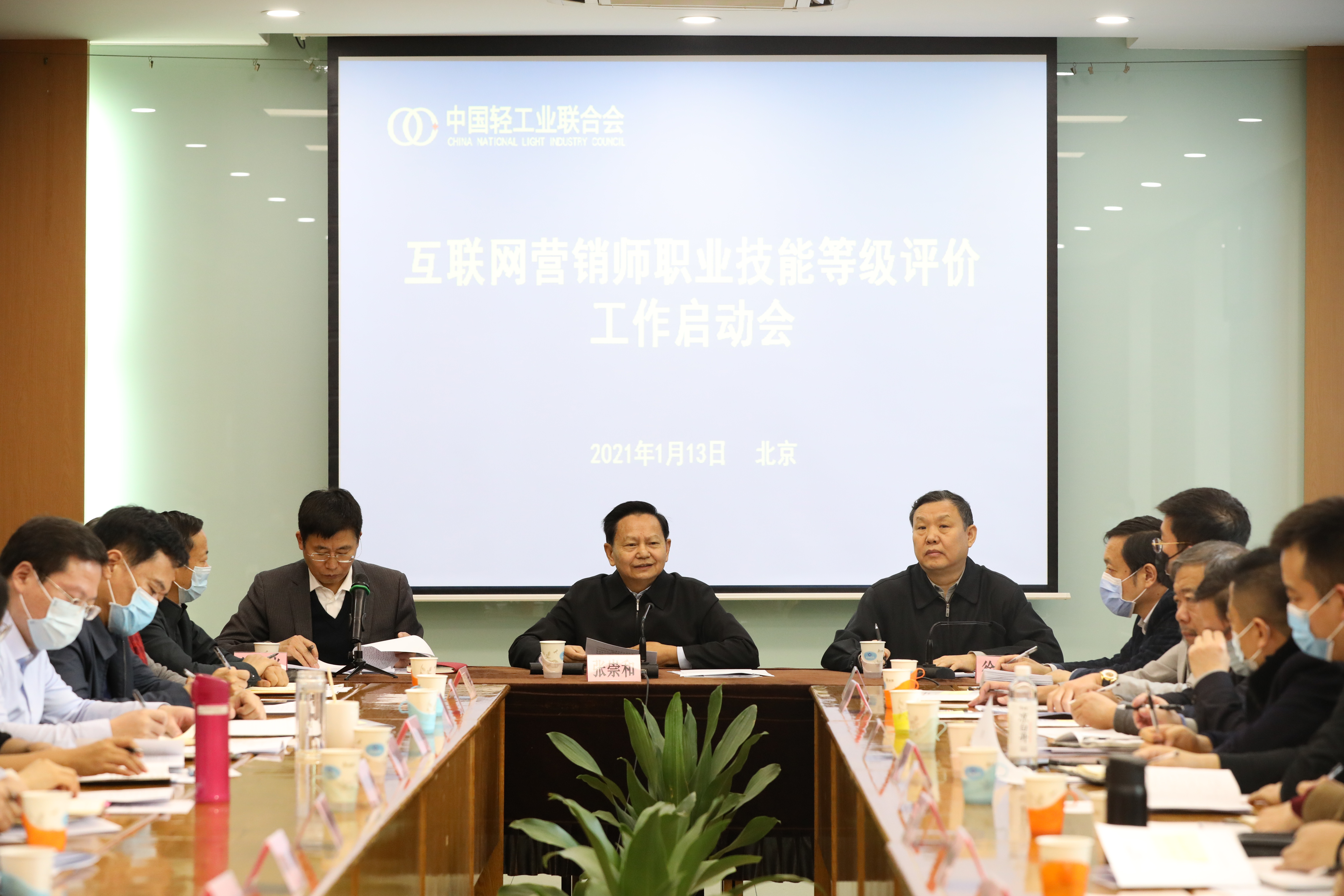 为建设高水平互联网营销师从业者队伍,高质量开展 互联网营销师职业技能等级评价相关工作,1月13日, 在北京召开全国 互联网营销师职业技能等级评价工作启动会。 会长张崇和出席启动会并讲话。中国轻工联党委副书记徐祥楠主持会议。中国轻工联执行秘书长陈建国、职业能力评价中心主任杨曙光、手工艺产业部主任浦永祥出席会议。即将开展互联网营销师评价的各总站、直属基地、行业基地代表共30余人参加会议。