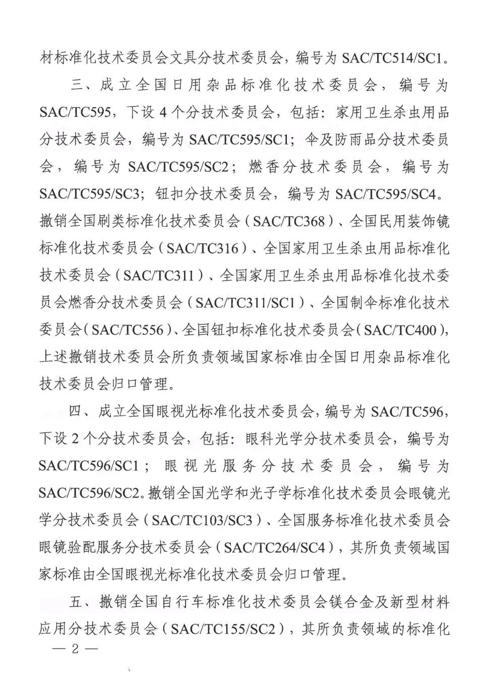 国家标准化管理委员会发布轻工领域标准化技术组织体系优化结果的公告