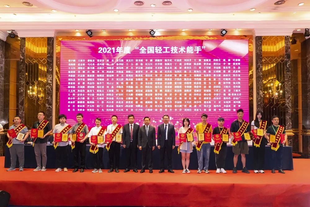 大会为2021年 “全国五一劳动奖章”获得者举行了授牌仪式;为2021年轻工领域举办的首届全国一类职业技能大赛、7项国家级二类竞赛、3项行业竞赛中产生的252名“全国轻工技术能手”颁发奖章和证书。