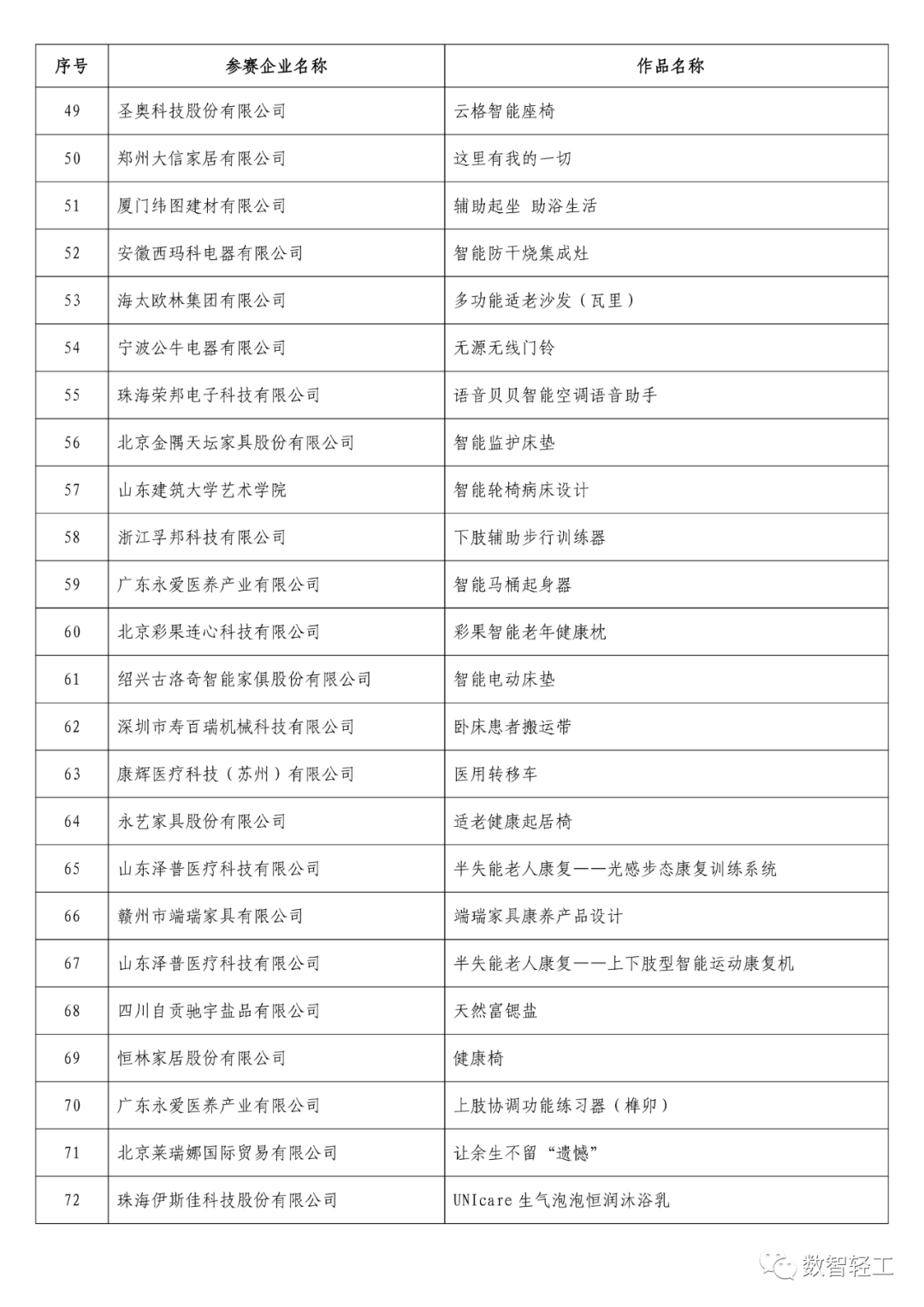 第一届全国轻工适老创新产品及智能健康解决方案大赛决赛作品名单(排名不分先后)