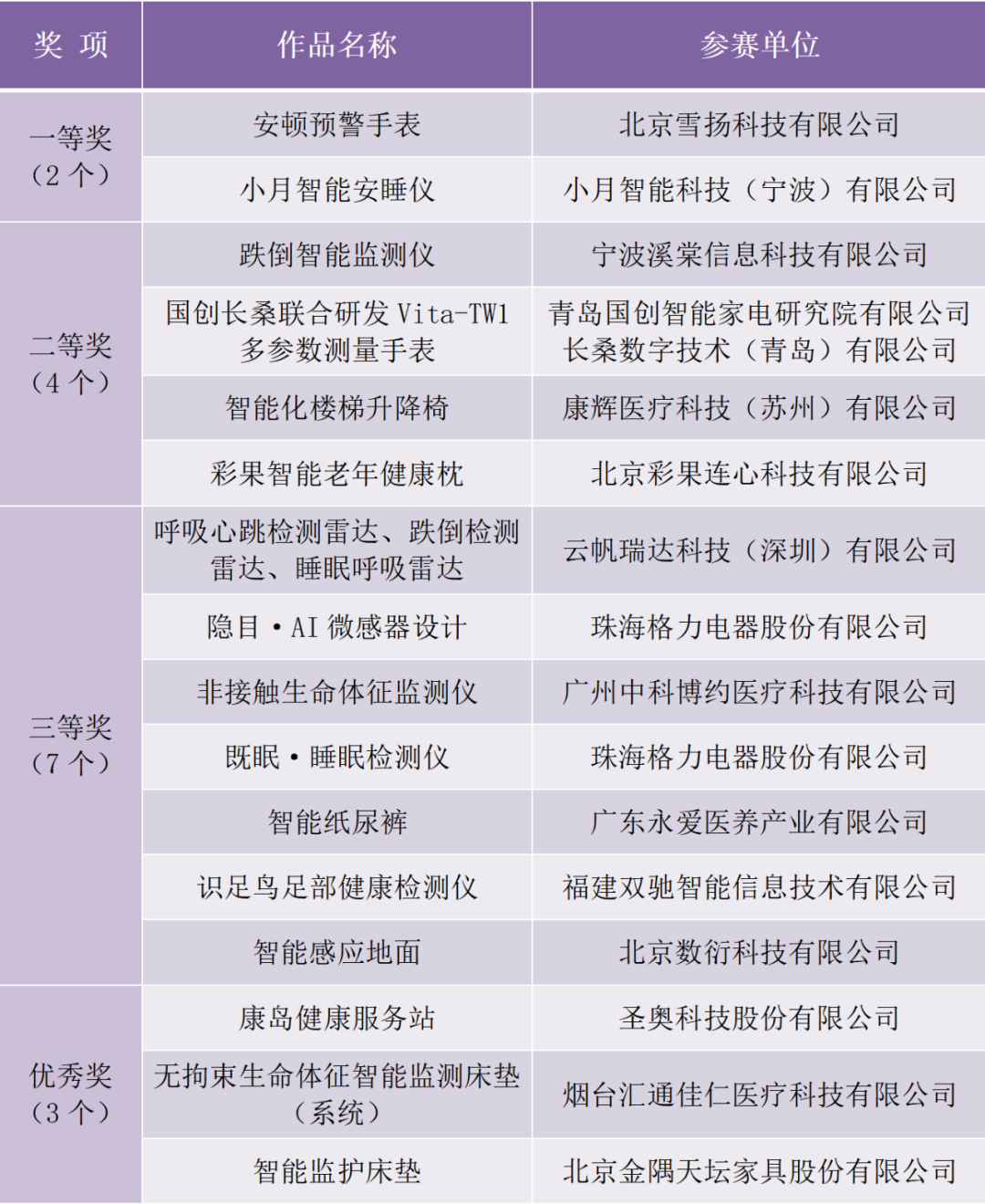 第一届全国轻工适老创新产品及智能健康解决方案大赛获奖作品名单