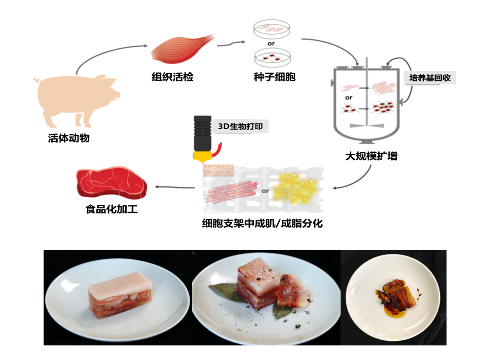 ——在基础前沿领域,将行业科技前沿同国家重大战略需求和经济社会发展目标结合起来,在合成生物学、高通量筛选、合成细胞工厂全局优化技术等方面取得突破进展,近10项科技成果通过鉴定,其中江南大学未来食品科学中心陈坚院士团队牵头完成的“细胞培养五花肉制备关键技术”,利用细胞工程和组织工程技术,在生物反应器中通过培养动物细胞的方式生产动物肌肉和脂肪,具有与动物肉相近的营养和风味。