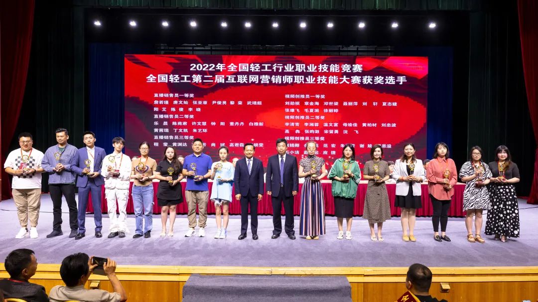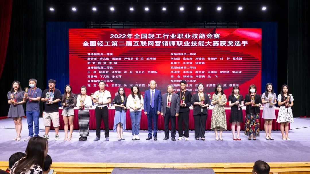 大会为2022年 “全国五一劳动奖章”获得者举行了颁奖仪式;为获得2022年“全国轻工技术能手”荣誉称号的优秀选手和全国轻工第二届互联网营销师获奖选手进行表彰。