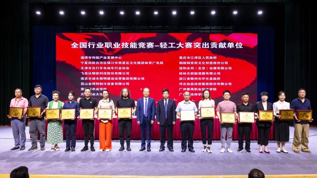 大会授予中国陶瓷工业协会等8家单位全国行业职业技能竞赛轻工大赛优秀组织奖;授予淄博市传统产业发展中心等15家单位全国行业职业技能竞赛轻工大赛突出贡献奖;授予景德镇市人力资源和社会保障局等25家单位轻工技能人才培育突出贡献奖。大会还对全国行业技能竞赛轻工大赛优秀裁判员进行表彰。
