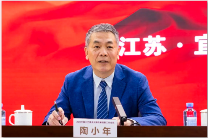 关心支持下,宜兴的工艺美术产业发展迅速。希望以本次大会为契机,推动中华传统文化创造性转化、创新性发展,加快工艺美术人才培养和队伍建设,加大工艺美术在文创产业的深度融合,以新的理念、新的手段助力工艺美术行业高质量发展,更好地满足人民对美好生活的向往。