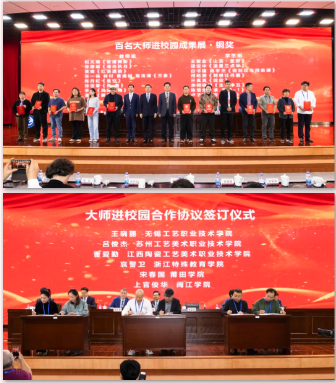 为深化大师进校园工作,中国工艺美术大师工作委员会持续推动更多大师与学校合作。大会举行签约仪式,一批大师与基地院校成功对接,正式建立合作关系。