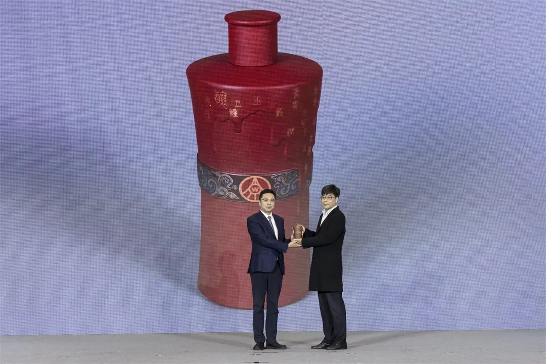 闭幕式上还举行了捐赠仪式,本次大赛陶瓷产品设计师赛项专家、中国工艺美术大师谢强向大赛战略联盟单位宜宾五粮液股份有限公司捐赠紫砂作品《年丰五谷 胸怀五洲》。