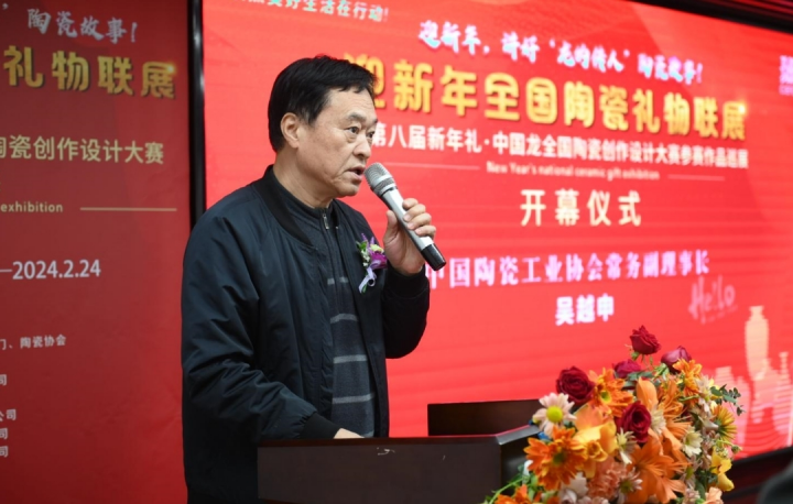 龙腾跃九霄,奋进新征程。每一个华夏子女都是龙的传人,中国陶瓷工业协会常务副理事长吴越申在致辞中表示,中陶协希望通过举办本次以“迎新年,讲好‘龙的传人’陶瓷文明故事!”为主题的“迎新年全国陶瓷礼物联展”,搭建一个线上线下产销融合、共享新发展成果的展示交易平台,激发广大陶瓷工作者守正创新的设计理念,助推全国陶瓷文化产业实现传承融合、创新发展。