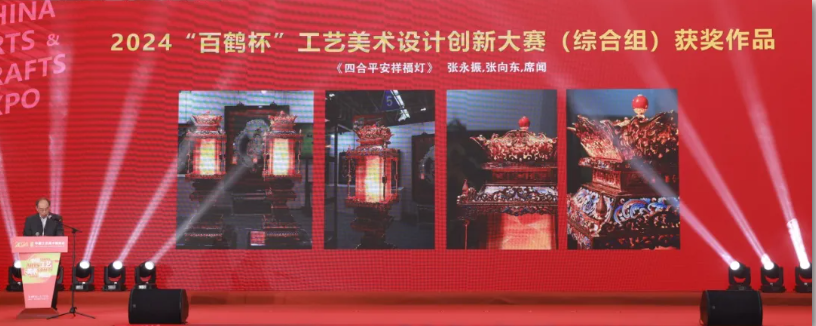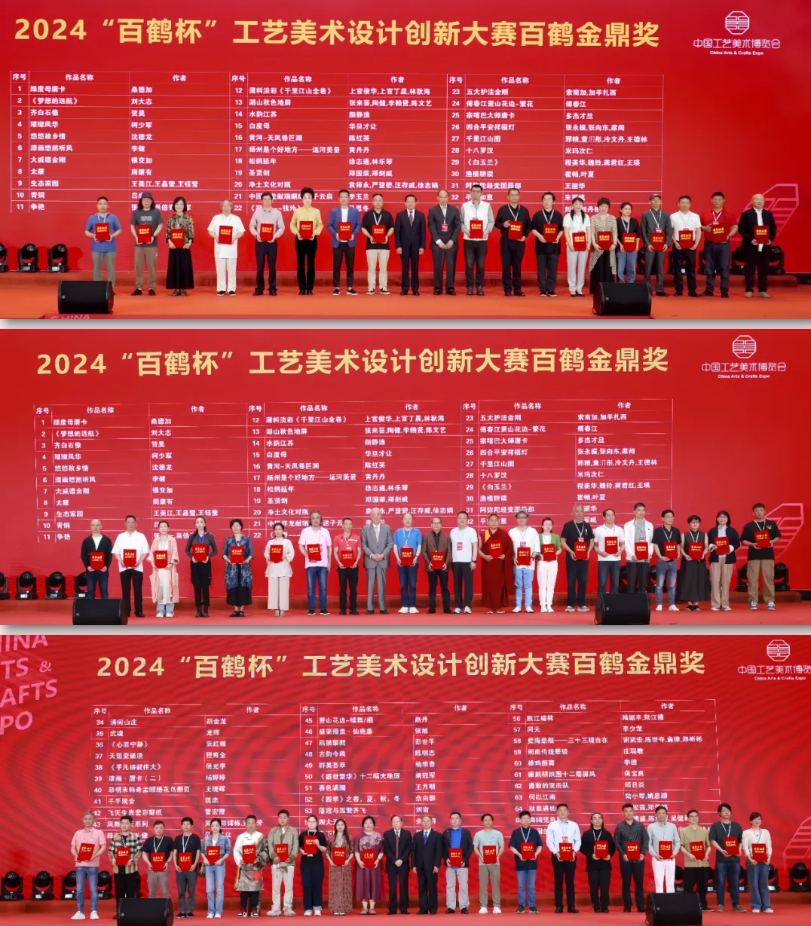 为贯彻落实习近平总书记关于传统手工艺振兴的重要指示批示精神,激励从业者奋发向上,推动传统工艺高质量传承发展,促进工艺美术行业繁荣发展,闭幕式上为在2024年“百鹤杯”工艺美术设计创新大赛(以下简称“百鹤杯”)、第二届百名大师进校园成果展、传统工艺大国非遗工匠等活动中涌现出的优秀作品、大师工匠举行了颁证仪式。