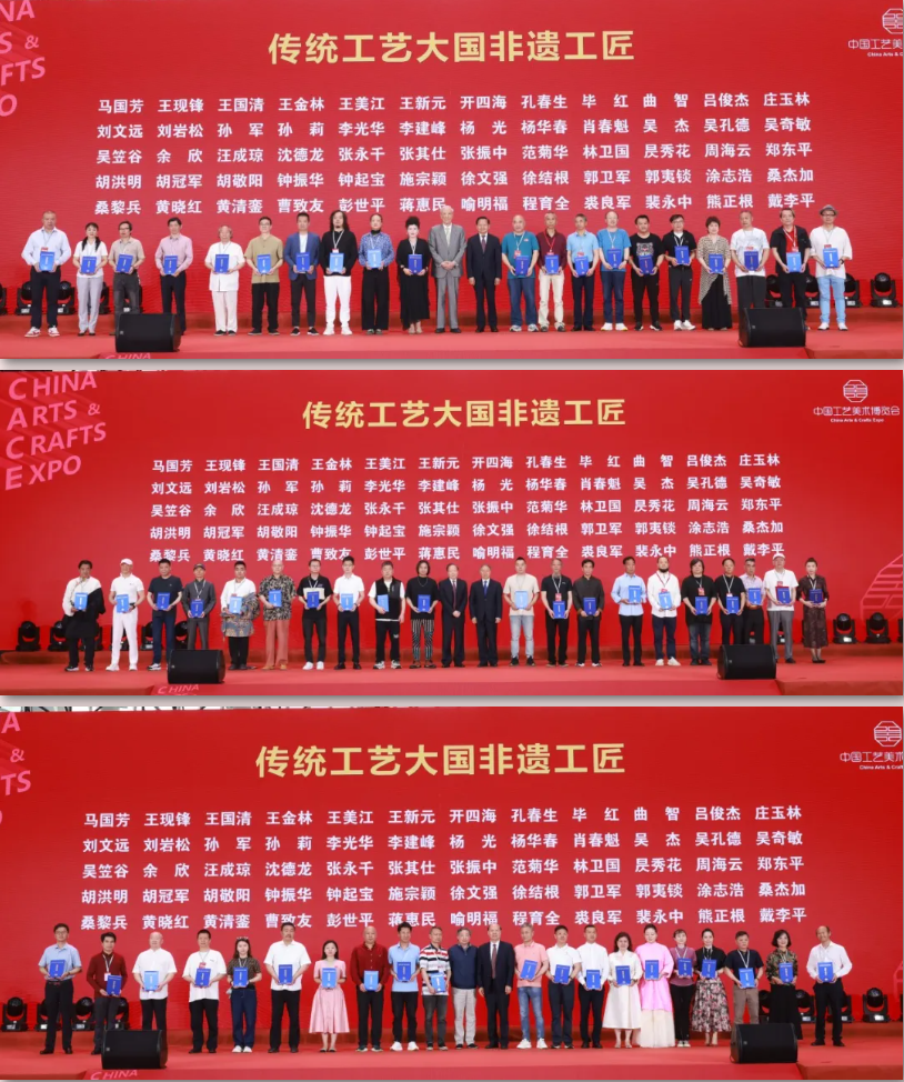 为推动工艺美术开启传承创新的新篇章,闭幕式上,为60名入选“首届传统工艺大国非遗工匠推荐学习活动”的非遗工匠们颁发证书。