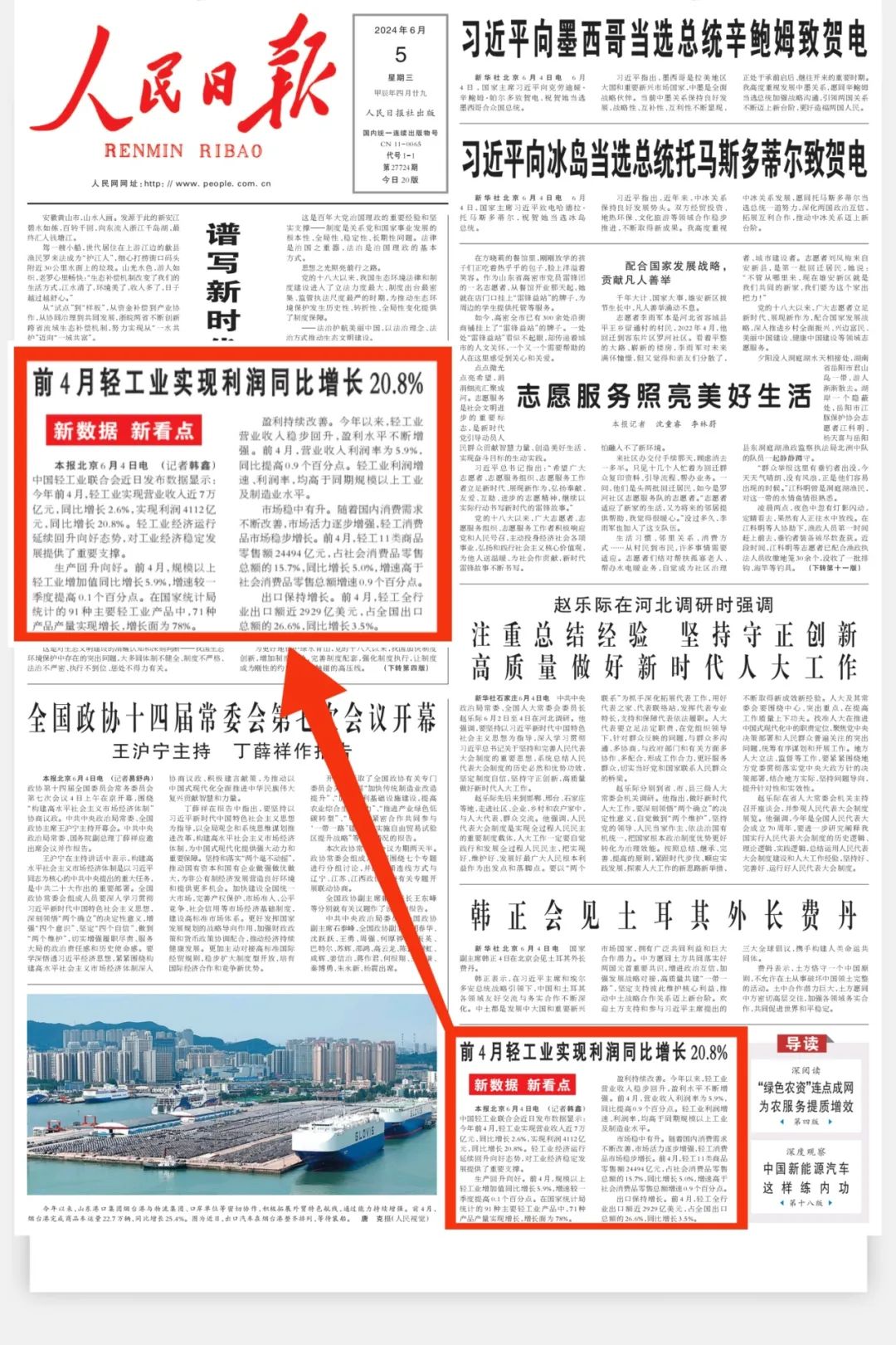 6月5日《人民日报》头版报道