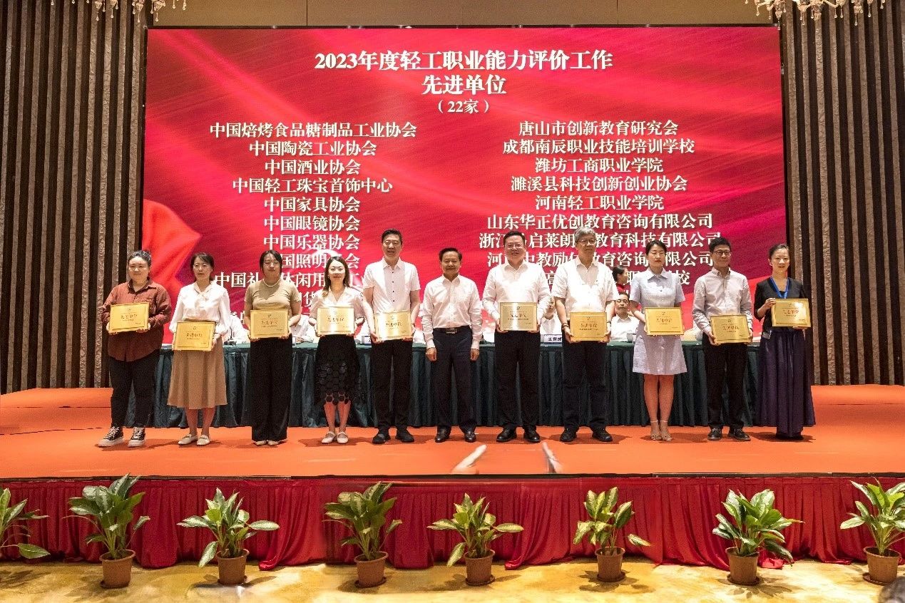 大会授予中国焙烤食品糖制品工业协会等22家单位“2023年度轻工职业能力评价工作先进单位”称号;授予中国陶瓷工业协会等3家单位“2021-2023年度轻工职业能力评价工作突出贡献单位”称号;授予张琳等22人“2023年度轻工职业能力评价工作先进个人”称号;授予李岳洋等22人“2023年度轻工职业能力评价优秀督导员”称号;授予刘橹等22人“2023年度轻工职业能力评价工作优秀考评员”称号。