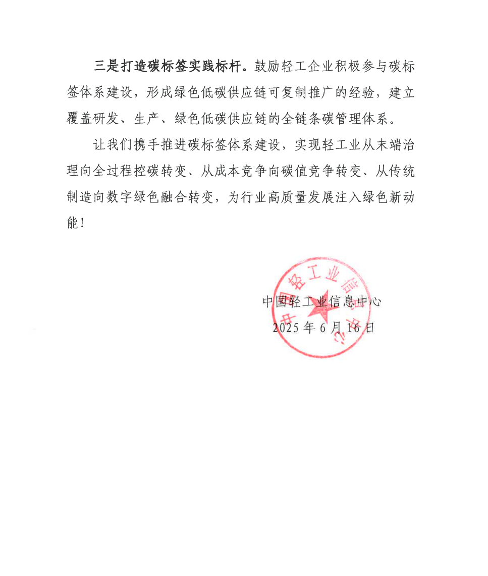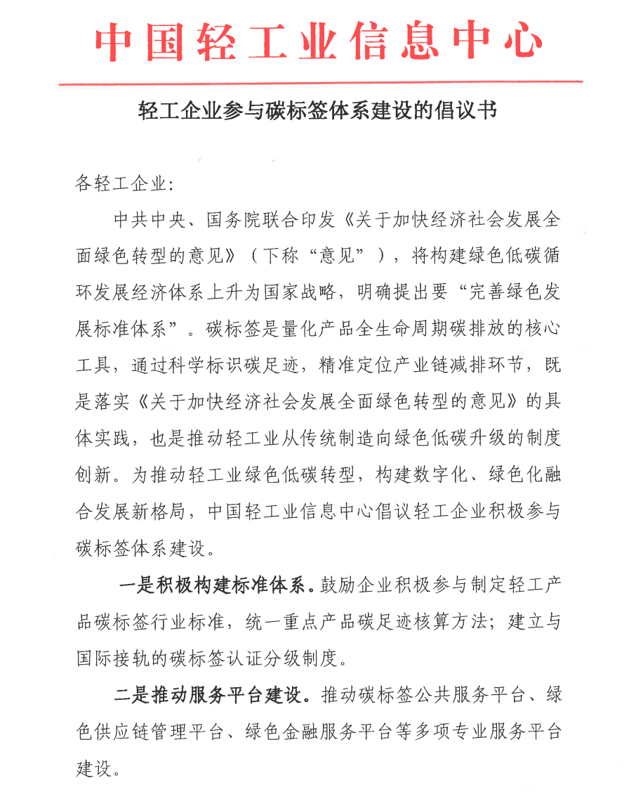 轻工企业参与碳标签体系建设的倡议书