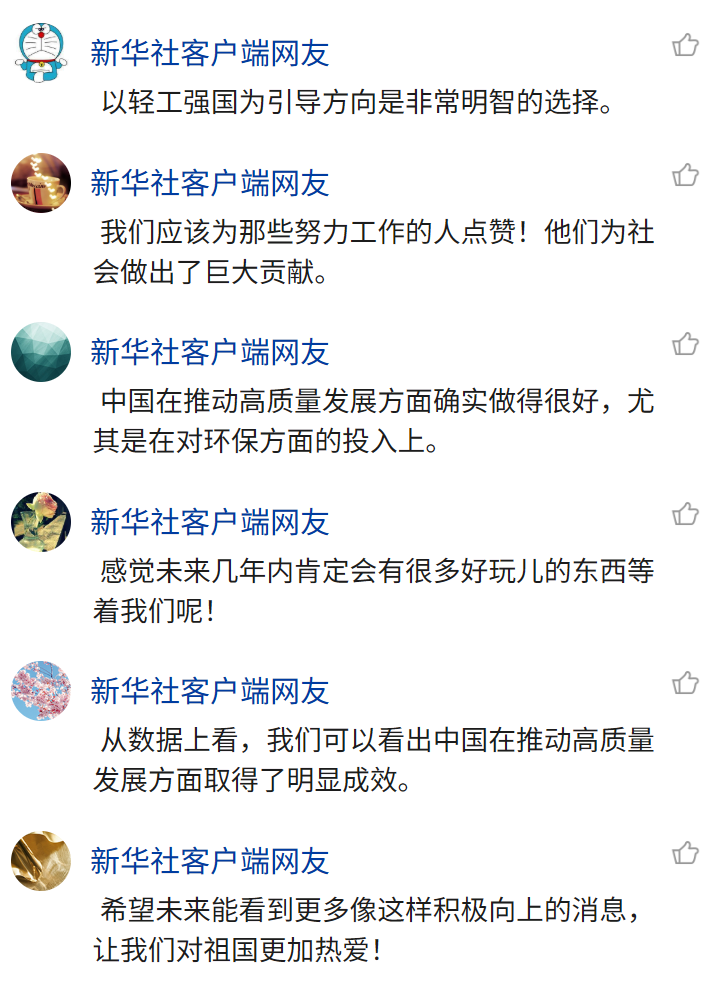 报道发出后,文章线上浏览量突破150万次,广大网友热烈评论“看来我们的轻工业已经站在了世界舞台中央啊!”。轻工业的高质量发展,为国民经济稳健发展和人民美好生活需要提供坚实支撑。(以下为部分评论内容)