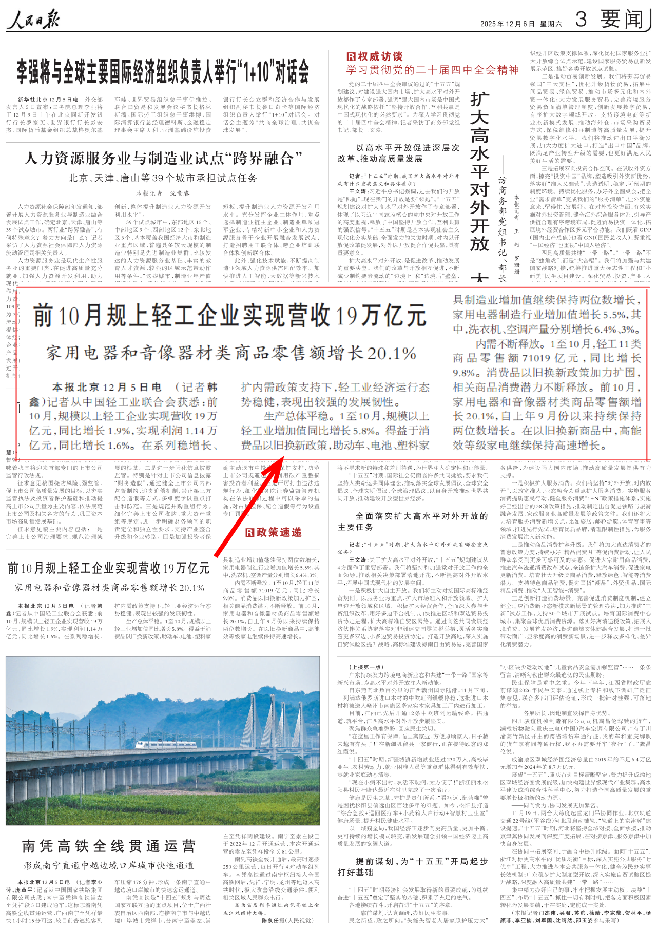 12月6日《人民日报》要闻版报道