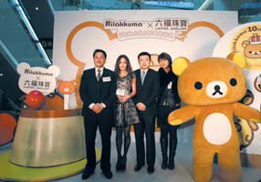 2013 年12月6日,六福珠宝与日本San-X及其版权代理RM -利丰亚洲携手合作,推出了一系列Rilakkuma“轻松小熊”精致的饰品。风靡全球的超人气卡通角色Rilakkuma“轻松小熊”系列新品发布会刚于12月6日在北京潮流所在地APM购物中心举办。