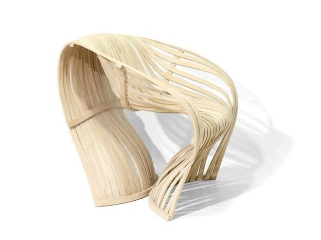 《舌尖上的中国2》火了陕西窑洞里走出的空心手工挂面,一排排晶莹洁白的挂面迎风而挂,阳光从中间穿透而来的美景令不少观众唏嘘不已。家具设计师们似乎也从美食中汲取灵感,将挂面的柔韧展现在木椅中。折一把挂面做椅子,纤薄、透视、但无伤木椅本身的功能性。如今,随着科技的进步,设计师们不断的跨越传统木制品 而渐渐创造 出现代 科技所能 达到的作品。其实真正让木材成为设计师首选材料的主要原因它能是随着不同的时代潮流理念而做出对应的设计变化。