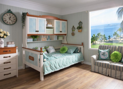 在细节的处理上,两个系列都别出心裁地加入了铆钉金属配置和高端皮革点缀,这在儿童家具里面当属首创。豆丁庄园的水洗白儿童实木家具更是开创行业先河,至今在儿童水洗白家具领域稳居行业标杆地位。
