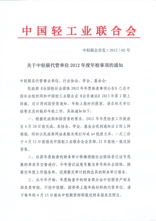 关于中轻联代管单位2012年度年检事项的通知