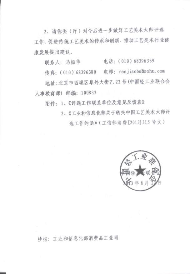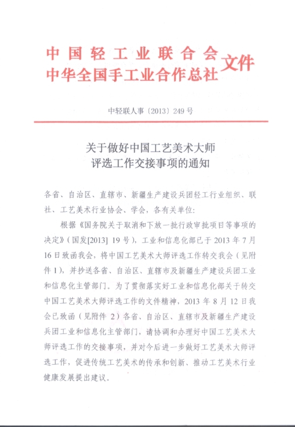 关于做好中国工艺美术大师评选工作交接事项的通知
