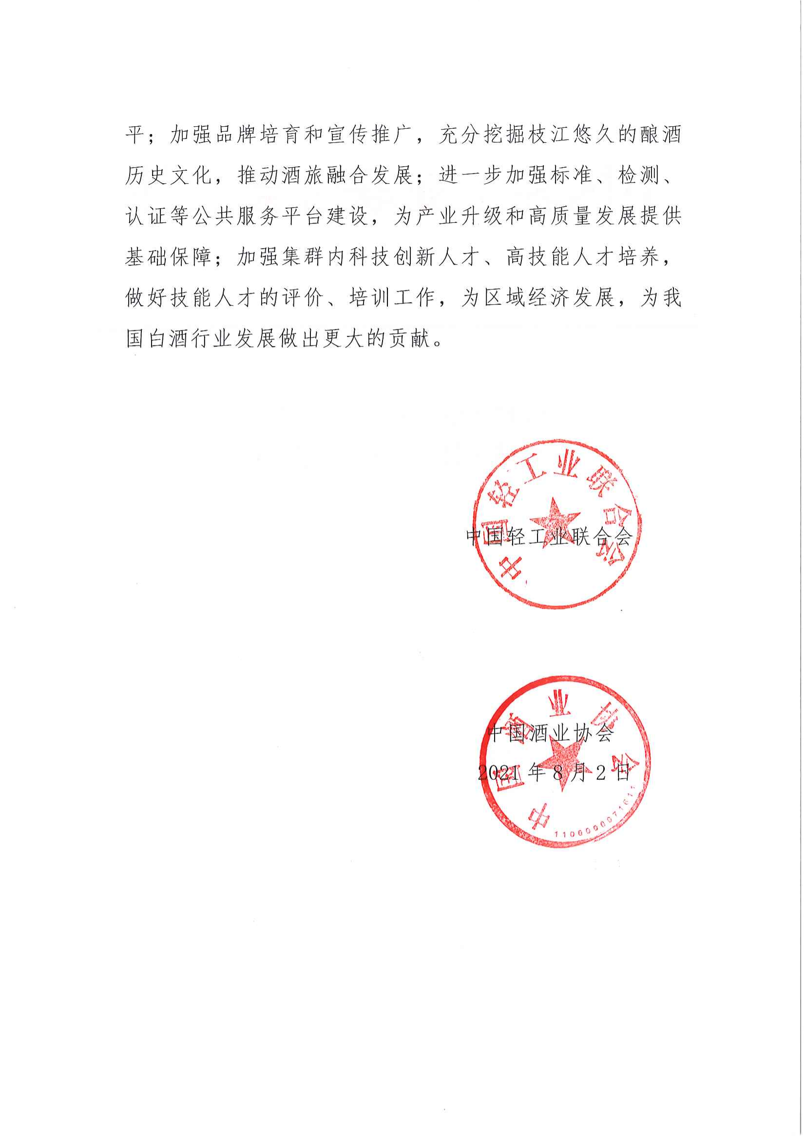 关于继续授予湖北省枝江市“中国白酒名城·枝江”称号的通知