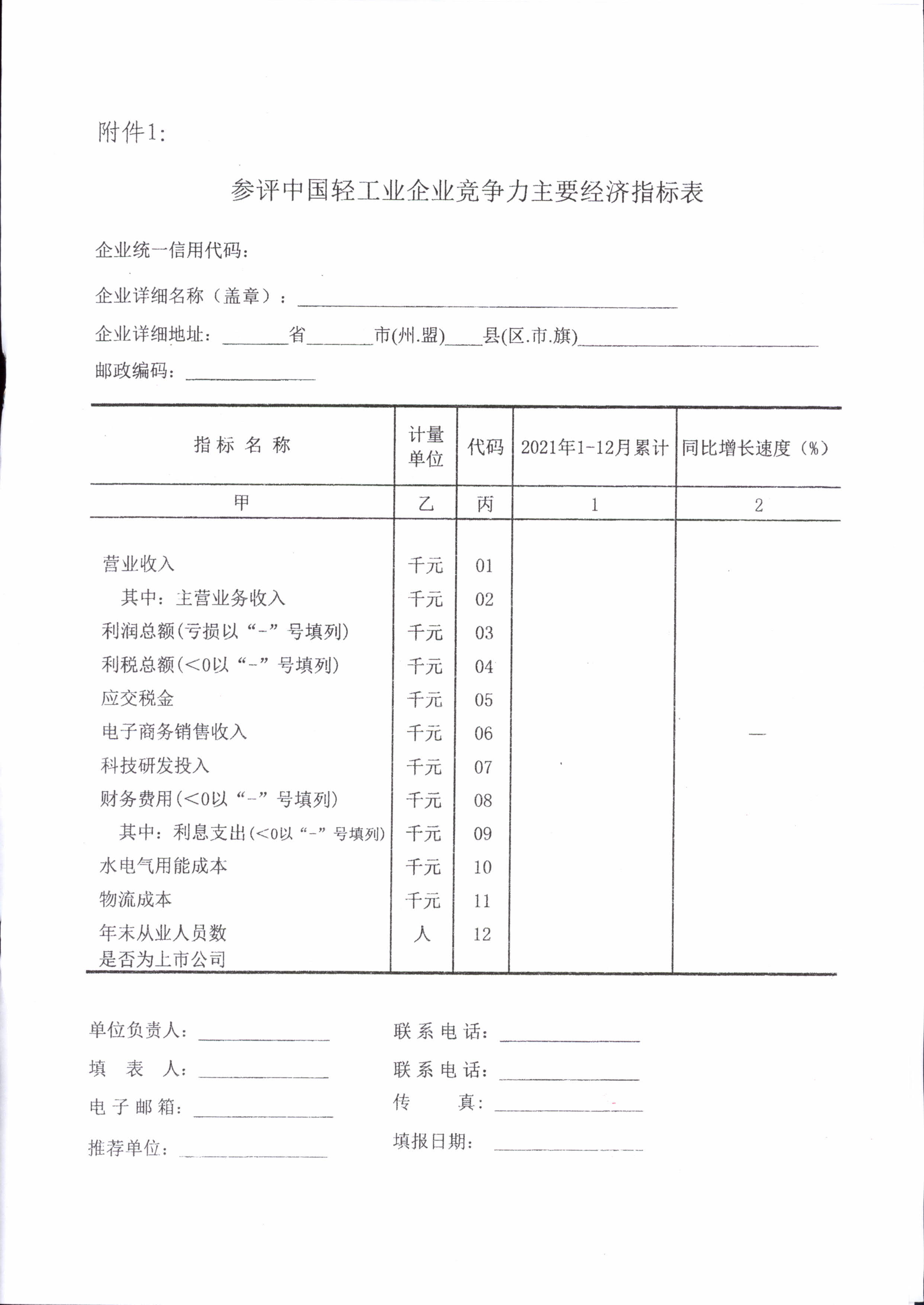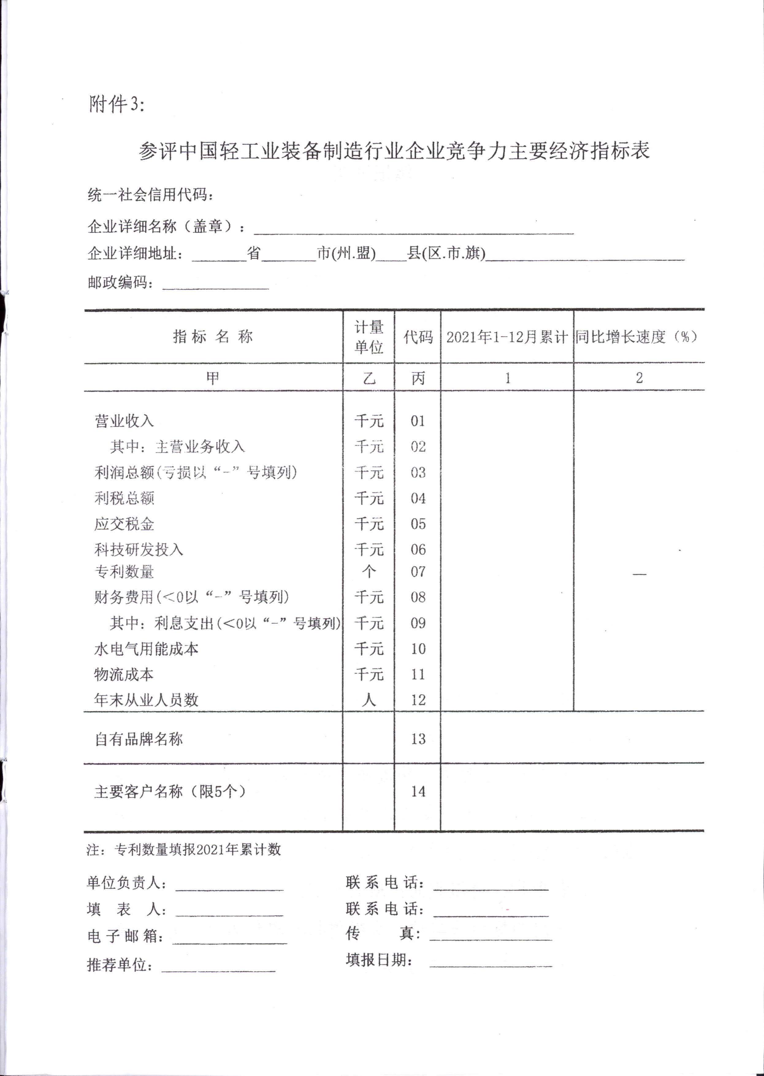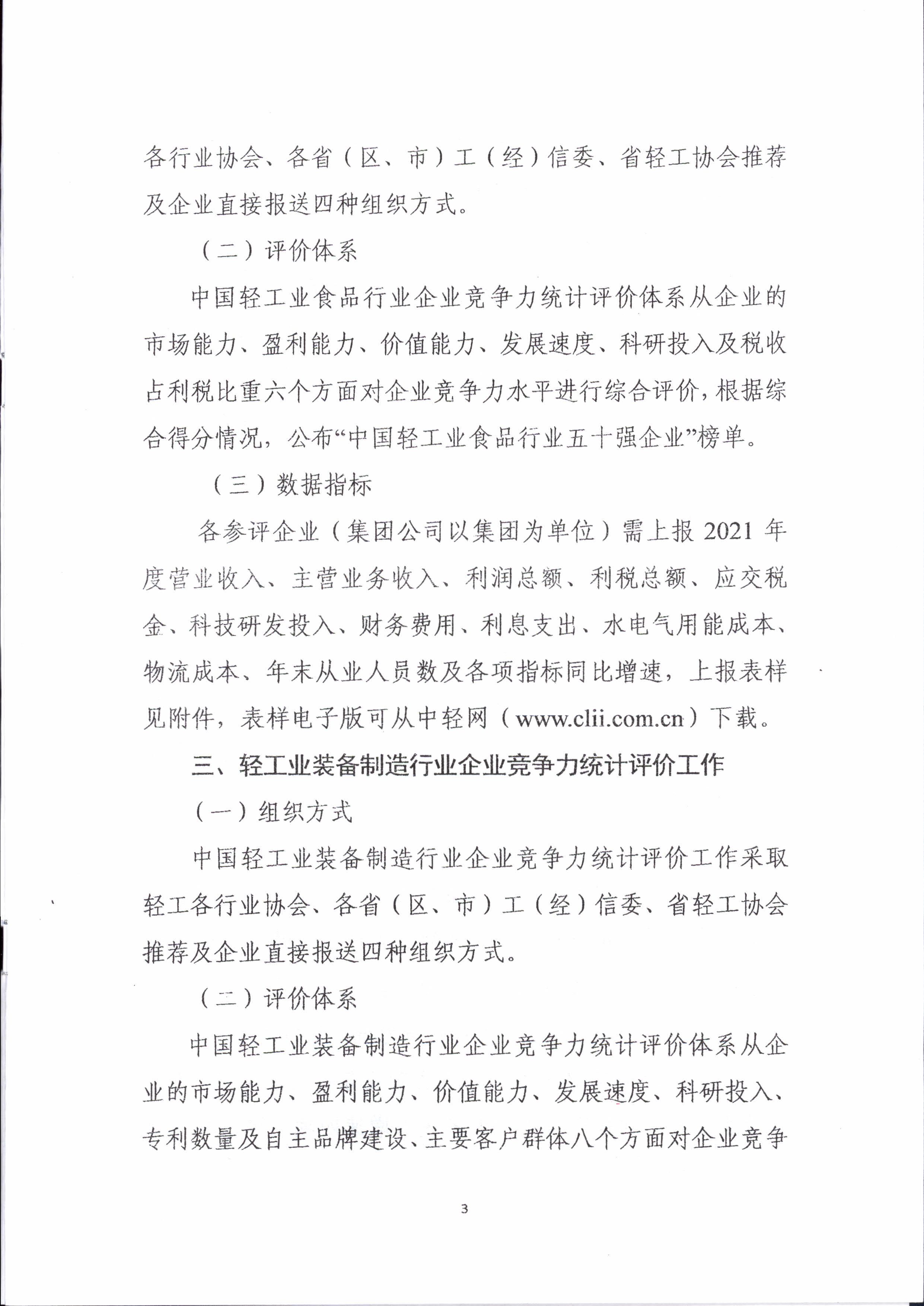 关于开展2021年度中国轻工业企业竞争力等统计评价工作的通知