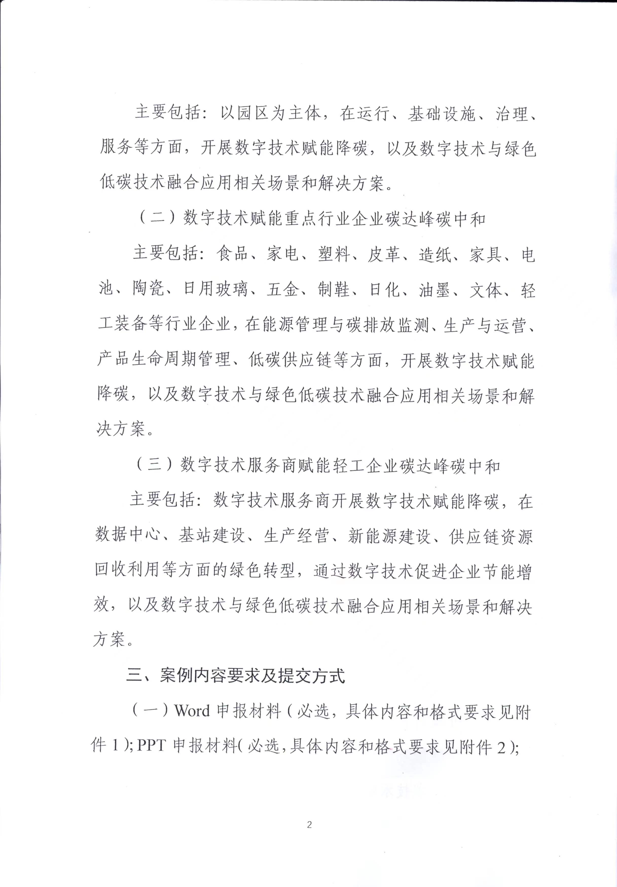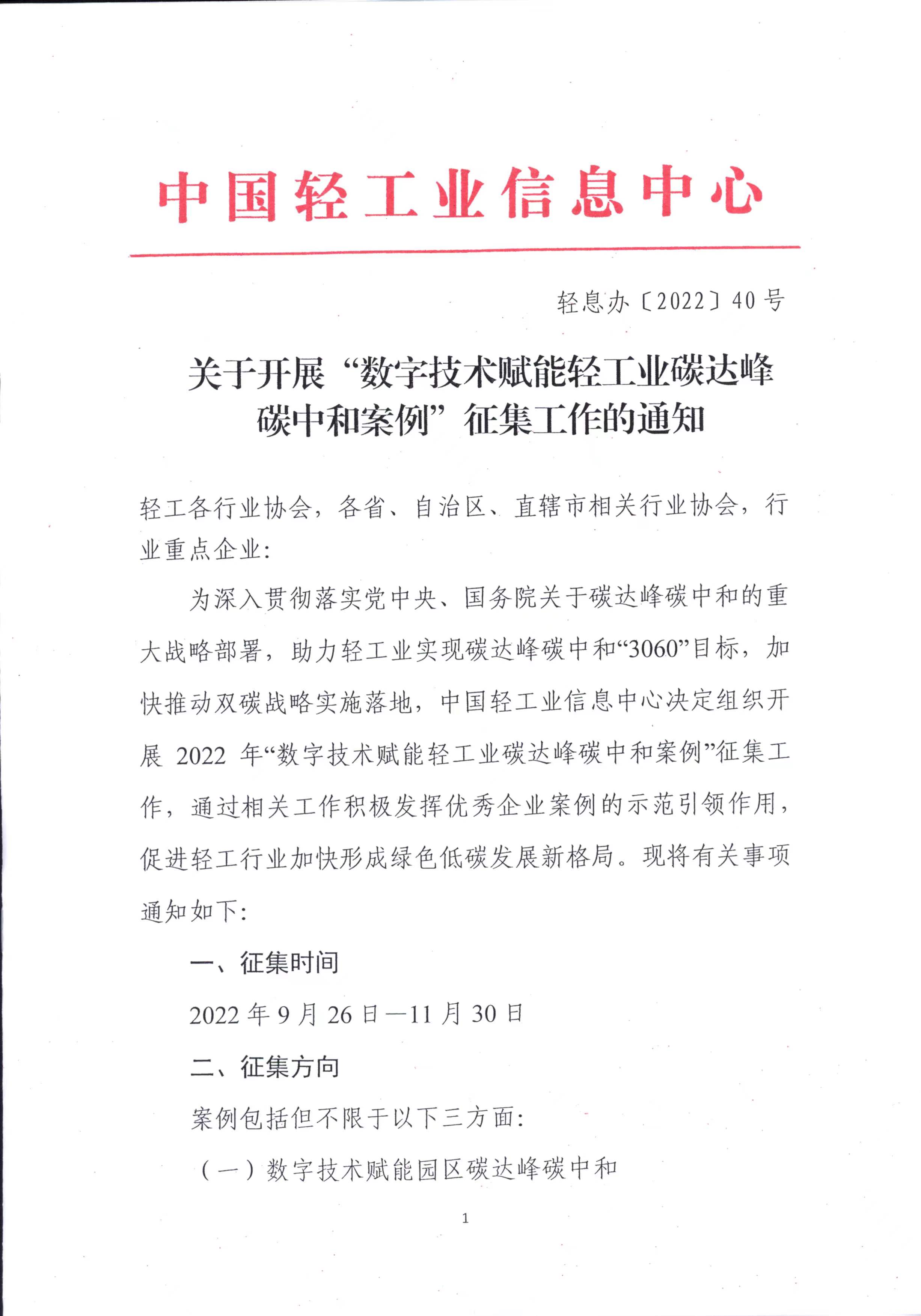 关于开展“数字技术赋能轻工业碳达峰碳中和案例”征集工作的通知