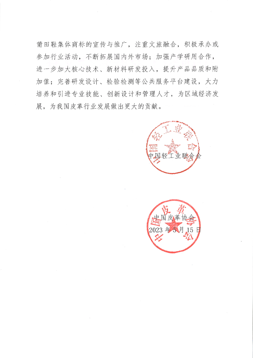 关于授予福建省莆田市“中国鞋都·莆田”称号的通知