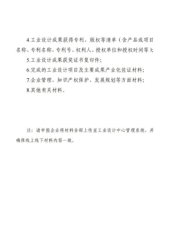 (四)申报方式。请省级主管部门按照《管理办法》规定的条件进行初审,择优确定推荐名单,向初审合格的申报主体分配网上登录账号(随后提供),由申报主体通过工业设计中心管理系统(网址:www.id-center.org.cn)在线填报所需信息。相关申报材料见附件,填写的内容和材料格式应符合《管理办法》要求。