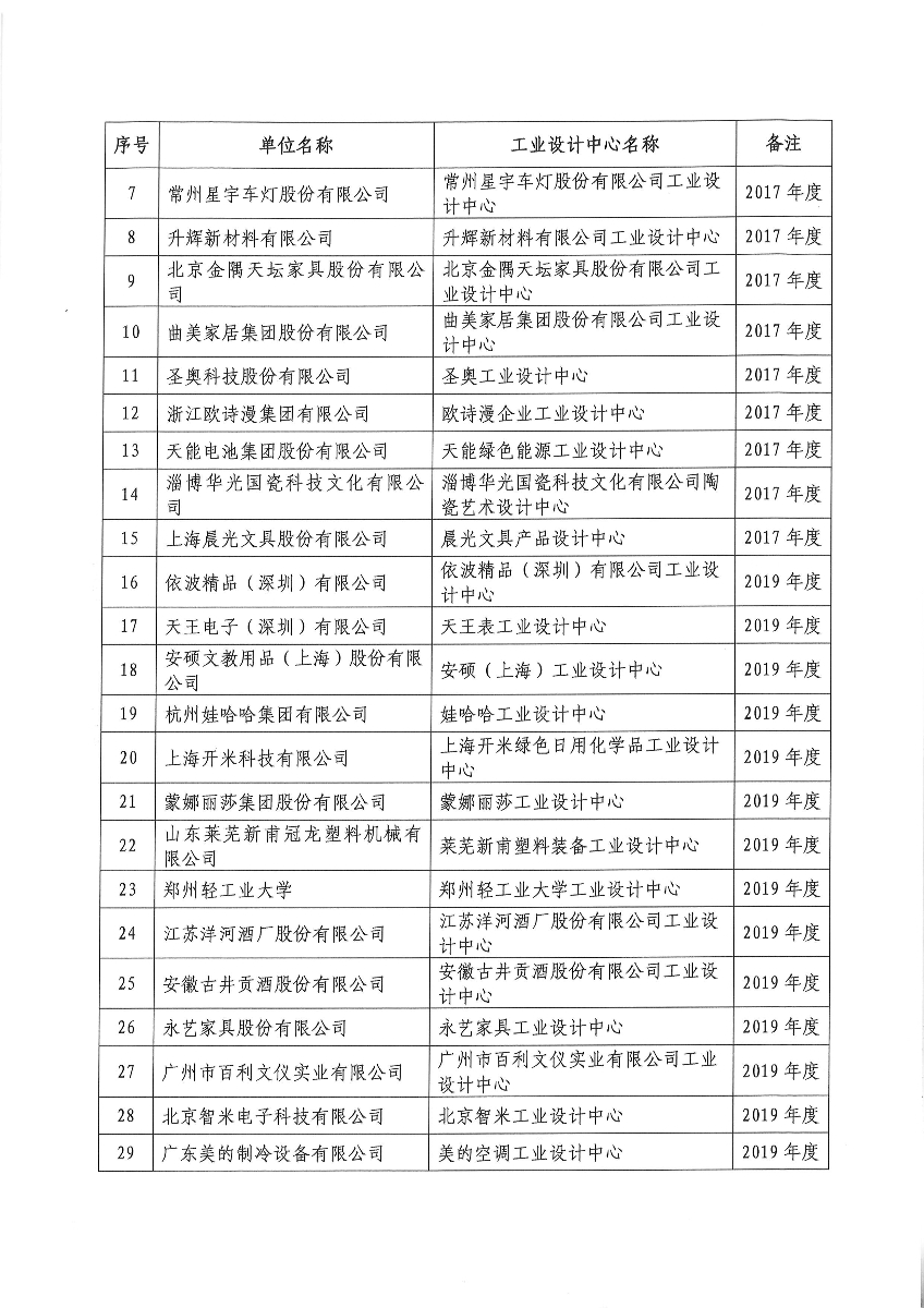 2023年拟认定及拟通过复核的2015-2021年度中国轻工业工业设计中心名单公示