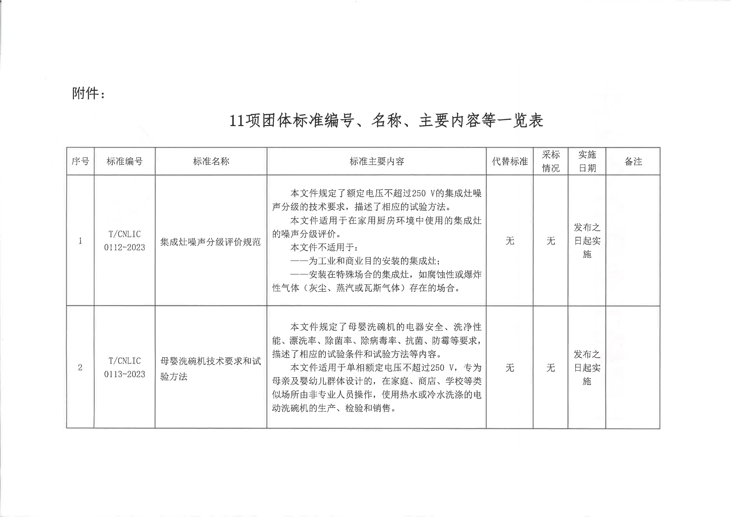 关于批准发布《集成灶静音分级评价规范》等11项团体标准的公告