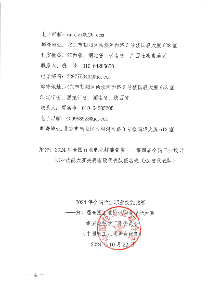 关于2024年第四届全国工业设计职业技能大赛决赛报名的通知
