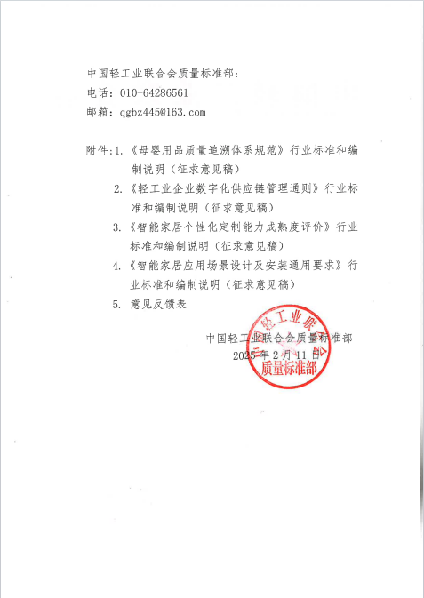 | 1、 | 关于征求《母婴用品质量追溯体系规范》等4项行业标准(征求意见稿)意见的函 |
