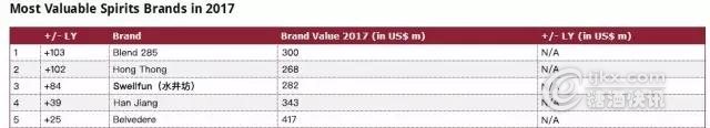 水井坊入选2017全球最具价值烈酒品牌榜
