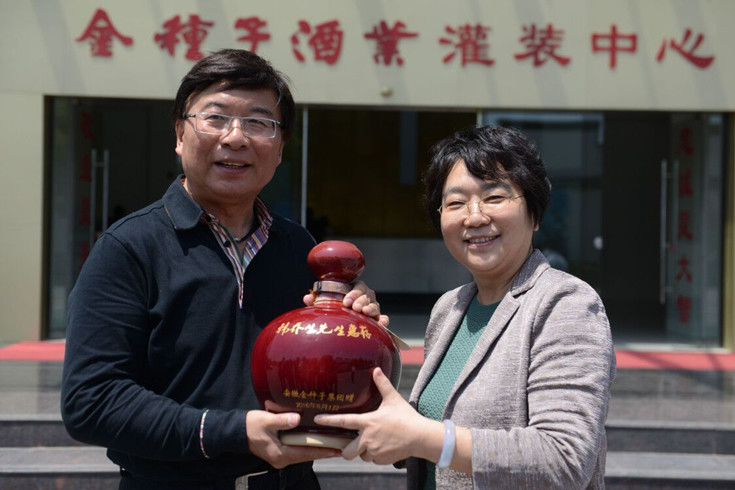 “制曲、培曲、入池发酵、均撒匀铺,见汽上甑,沿袭传承千年的传统老五甑酿造工艺,是金种子美酒的根本。”来自制酒二车间的90后车间主任李增向来访的韩乔生介绍道。喜爱踢足球的他,见到韩乔生后激动的声音有些微微的颤抖。在介绍金种子酒的酿造工艺后,特别邀请偶像品尝刚酿出来的美酒,口齿间弥散着窖香、浓烈,回味中有点微甜,是难得的美酒。最后在众多粉丝的请求下,韩乔生与工作在酿酒一线的员工们热情的合影留念。