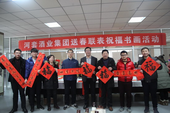 在春节来临之际,2月7日下午,公司党委和工会共同组织的“送春联 表祝福”书画活动在河套酒业书画院火热开展,河套酒业书画院的书画家们现场挥毫泼墨,书写春联和福字,为大家送上新春的祝福。