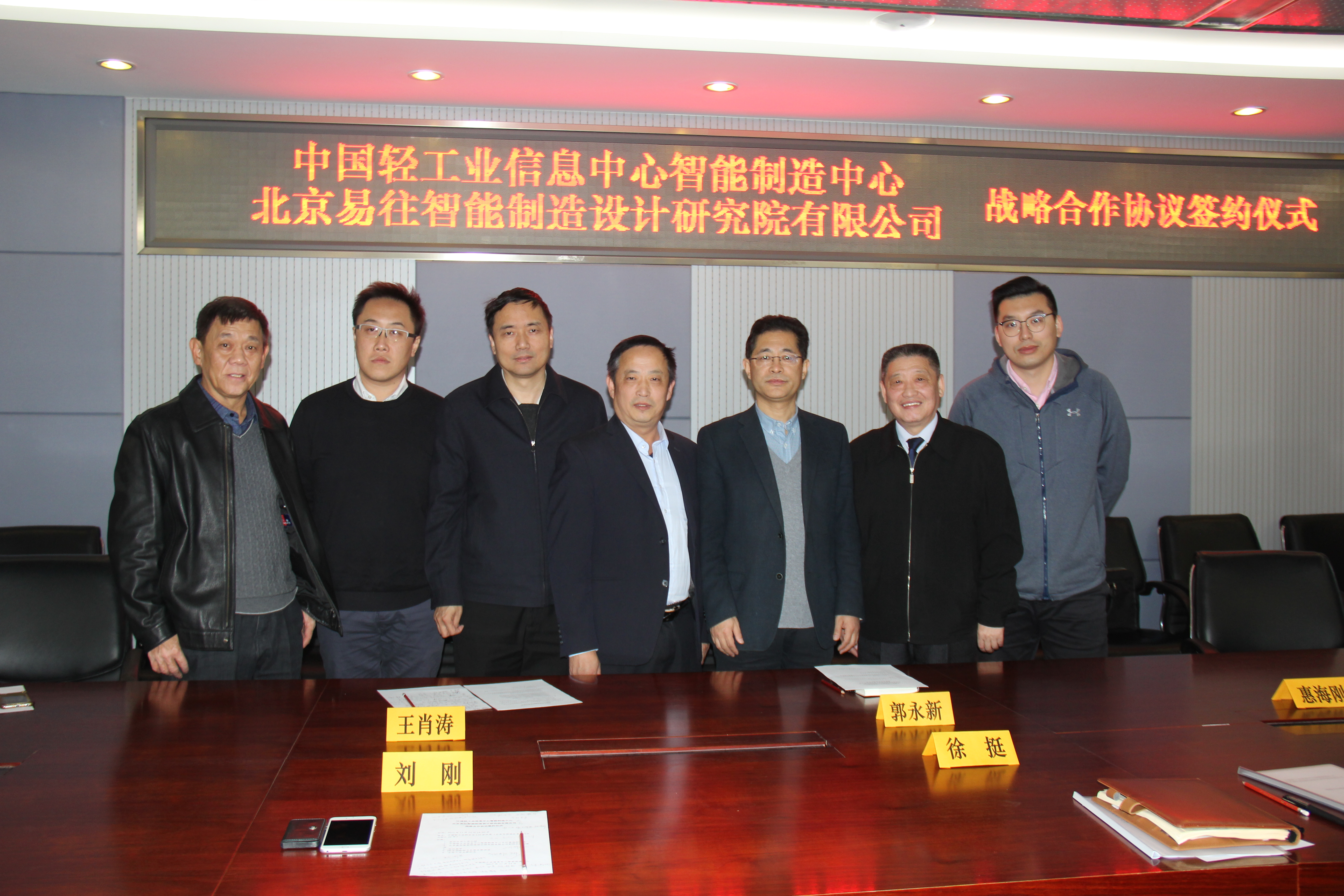 智能制造中心米延琪等领导,北京易往智能制造设计研究院有限公司副院长徐挺,易往信息技术(北京)有限公司市场总监刘刚。双方此次达成战略合作,标志着国内智能工厂整体解决方案领先企业易往信息将在我国轻工业行业领域施展作为,也必将对我国轻工业的智能化发展产生深远影响。