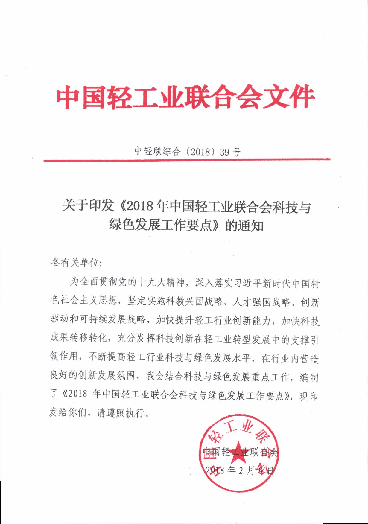 科技与绿色发展水平,2018年中轻联重点抓好以下几个方面的工作: