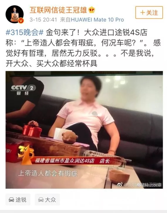 当然,在拍摄画面,这个工作人员的回复火了:“上帝造人都会有瑕疵,何况车呢?”