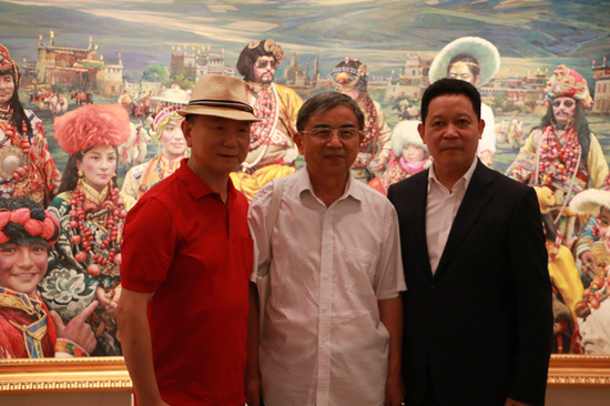 中国文联副主席、党组成员、书记处书记赵实, 民革中央副主席、全国政协副秘书长刘家强,全国政协原副秘书长杨崇汇,全国政协原副秘书长,教科文卫专委会副主任常荣军,致公党中央原副主席、全国人大原外侨委副主任杨邦杰,中国文联副主席、文化部原副部长董伟,中央编办原副主任张崇和,中国美协分党组书记,驻会副主席、秘书长徐里,中国国家画院院长、中国美术家协会副主席杨晓阳,四川省人大副主任刘捷, 四川省人民政府副省长杨兴平,四川省文联主席、四川省文化厅原厅长郑晓幸,四川省政协原常委、文史学习委员会主任、四川文联党组原书记蒋东生,四川省公安厅原厅长吕卓,四川省作家协会主席阿来,四川省新闻网传媒集团董事长张志跃,成都市文广新局局长师江, 四川广安市文联主席童光辉,四川省美术家协会主席梁时民,四川省美术家协会副主席、副秘书长杨梁相,成都杜甫草堂博物馆馆长刘洪,海南省文联副主席李福顺,西藏美术家协会副主席唐天源,西安美术学院副院长郭北平,全美中国作家联谊会会长冰凌,全美中国作家联谊会执行会长沈世光,中国国家画院名誉院长、中国画学会会长龙瑞,中国国家画院副院长、书法篆刻院执行院长曾来德,中国美术馆副馆长谢小凡,中国作家协会副主席蒋子龙, 中国著名书画名家崔如琢,北京保利执行董事赵旭,中国陶艺大师吕俊杰,中国文物保护基金会副理事长李纯,中国文化艺术发展促进会会长霍凤仁,副会长王喆,副会长兼秘书长王建国,中国收藏家协会副会长叶星生,宗教界代表加措活佛,著名音乐人谭维维、舒楠等出席本次展览。