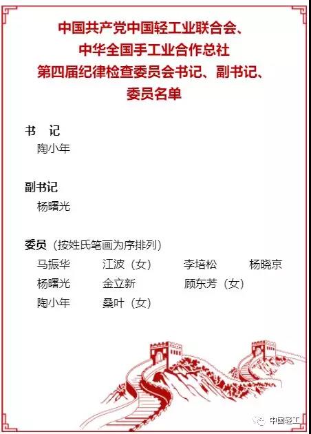 中轻联、总社第四届纪律检查委员会书记、副书记、委员名单