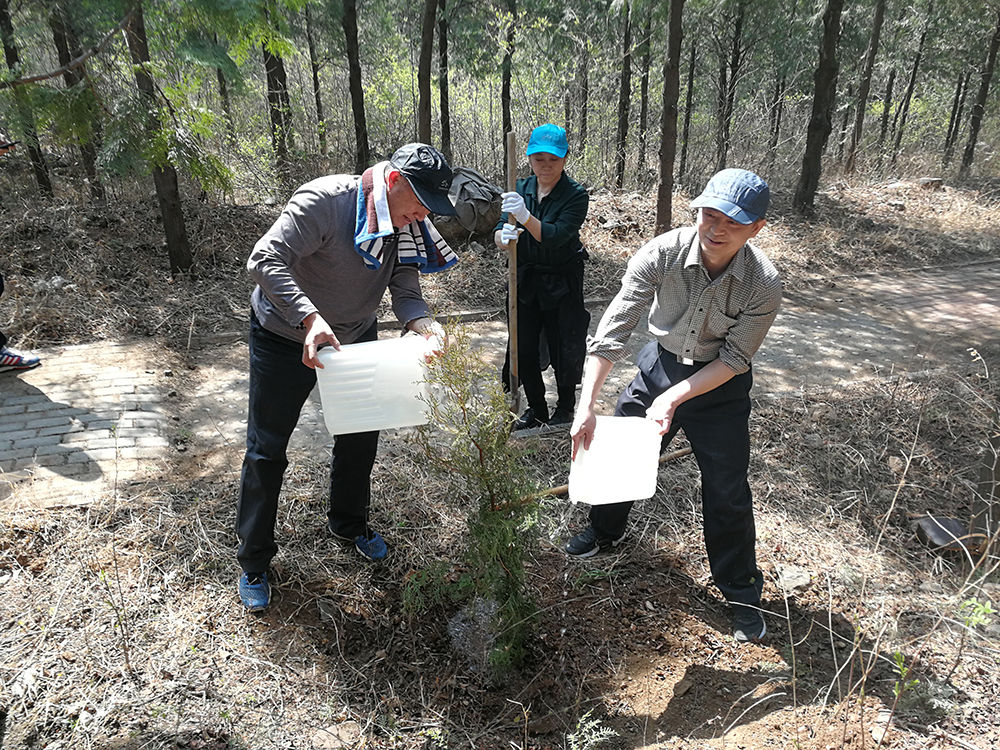 动员会后,张崇和等领导扛起铁锹、拿起镐头,和广大干部职工一起扶苗围堰、拎桶浇水,栽下了一株株车厘子、侧柏,为春日的北京增添了一片新的生机。随后,各位领导还和干部职工一起,对400余株树木进行了绿化养护。