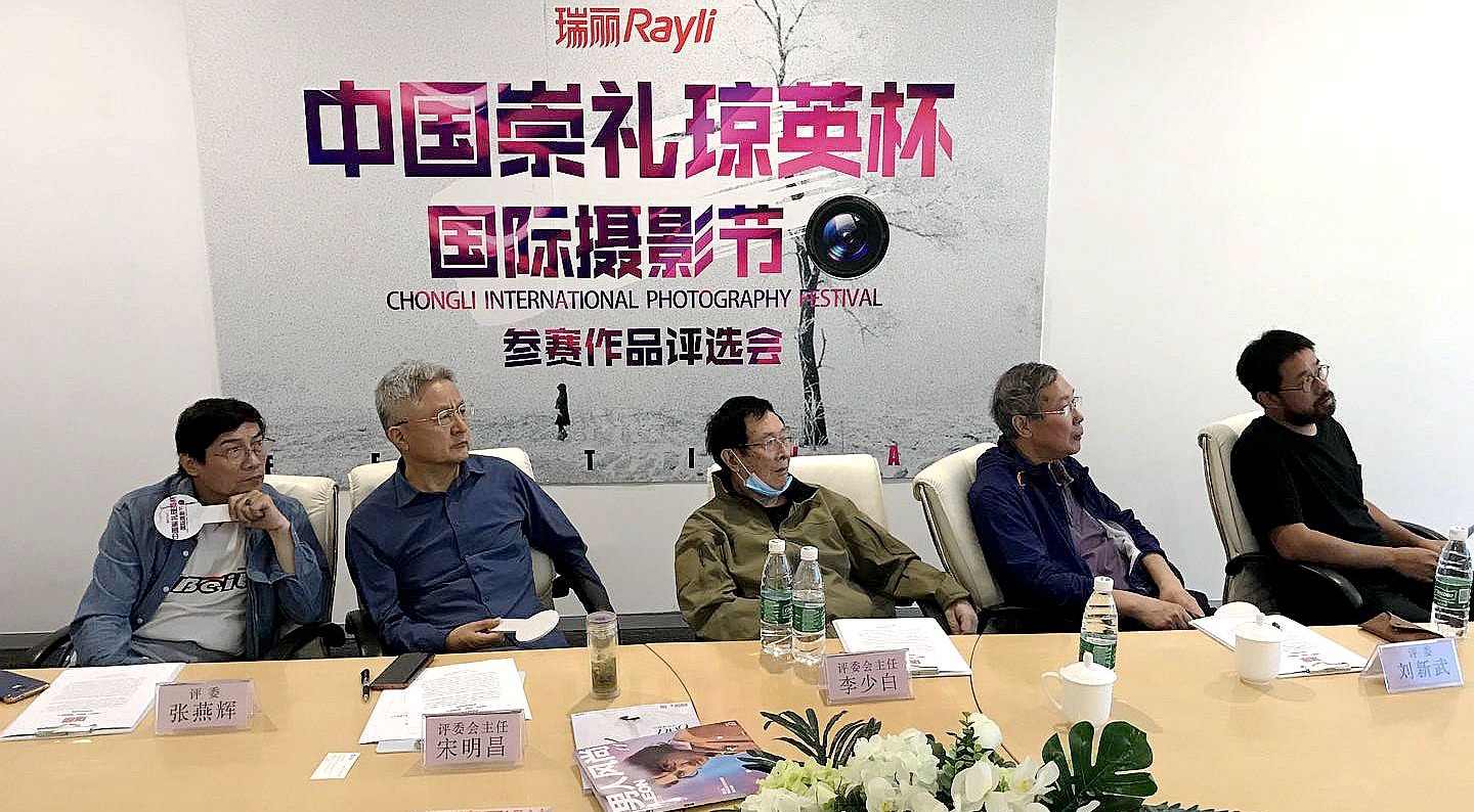 摄影节五位评委在认真参与评选环节(单达 摄)