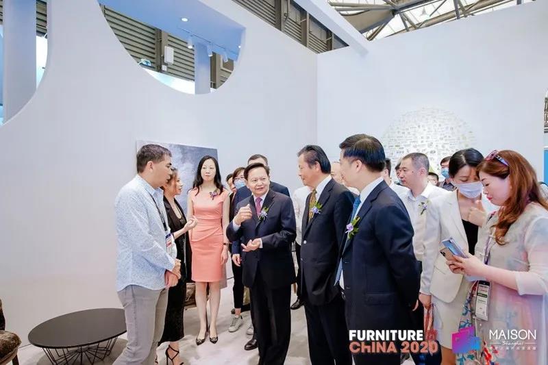 中国家具协会理事长徐祥楠、上海博华国际展览有限公司创始人王明亮,中国家具协会、各地方家具行业协会、家具行业企业负责人等陪同参观。