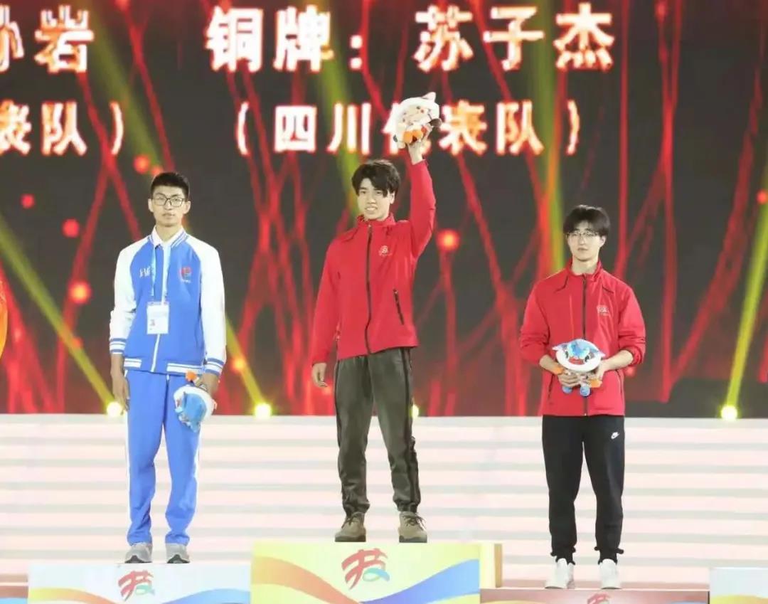 代表队选手孙岩(中)获精细木工项目金牌。