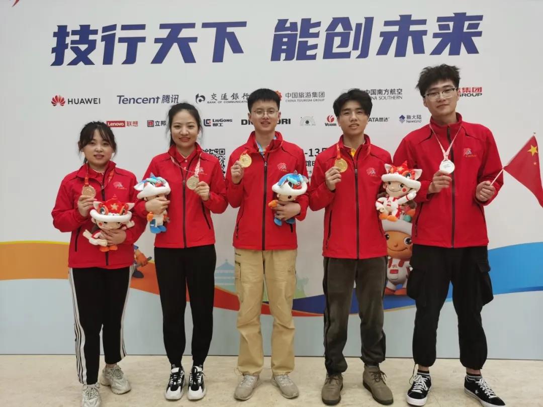 经过激烈比拼, 代表队的5名小将奋力拼搏,勇创佳绩,取得两金两银一铜的优异成绩,获奖率100%。其中,李德鑫获家具制作项目金牌,孙岩获精细木工项目金牌,石纪龙获木工项目银牌,王丽丽获糖艺\西点项目银牌,刘曼曼获烘焙项目铜牌。这也表明, 代表队的5位选手全部入选第46届世界技能大赛中国集训队。集训队选手将作为全国顶尖技能种子选手进行深入培训考核选拔,最终决出各赛项的“全国第一”出征2022年在上海举办的第46届世界技能大赛。