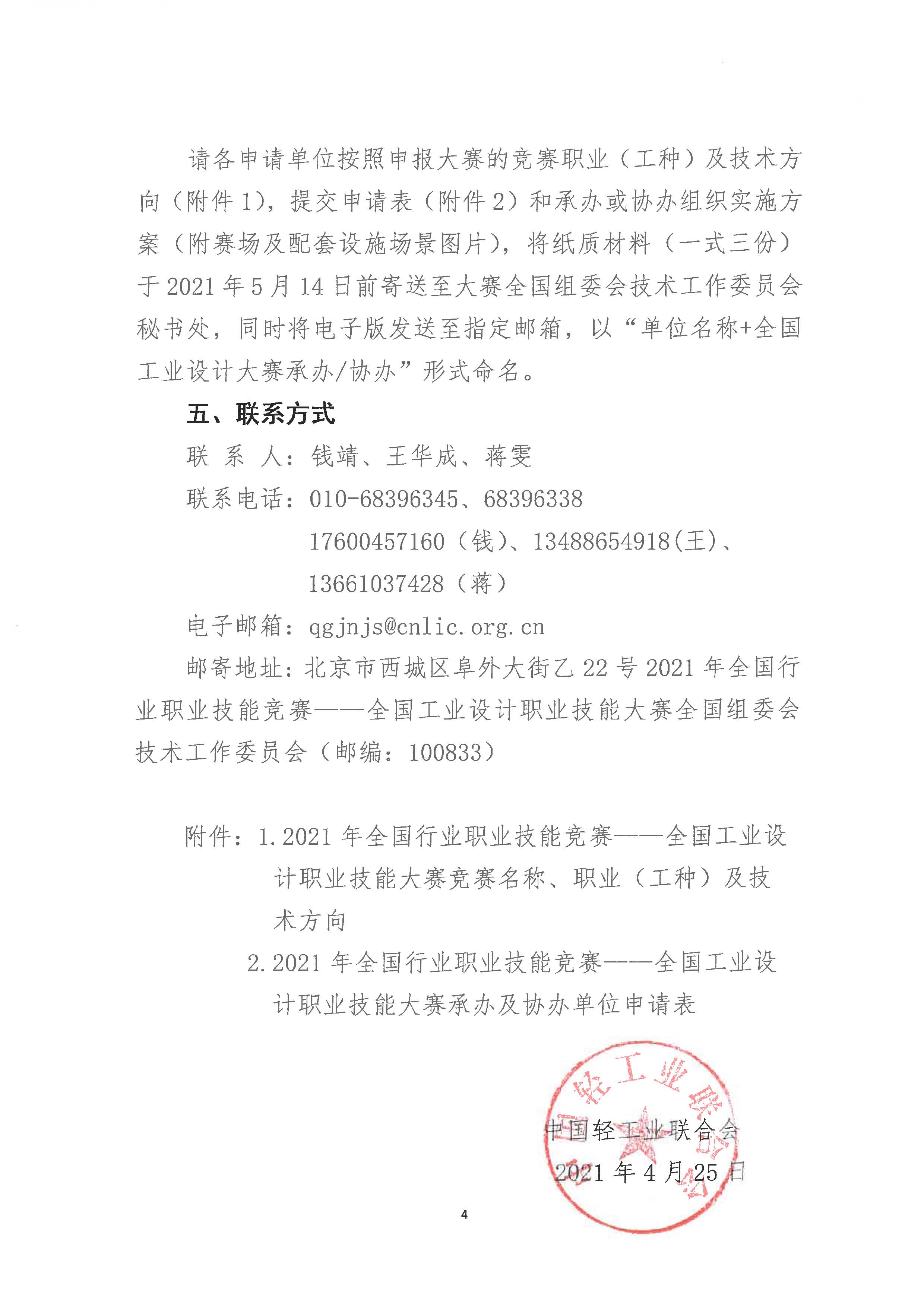 关于开展2021年全国行业职业技能竞赛——全国工业设计大赛承办及协办单位征集工作的通知