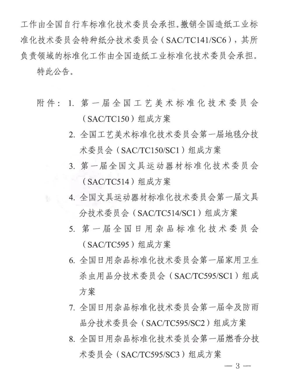 国家标准化管理委员会发布轻工领域标准化技术组织体系优化结果的公告