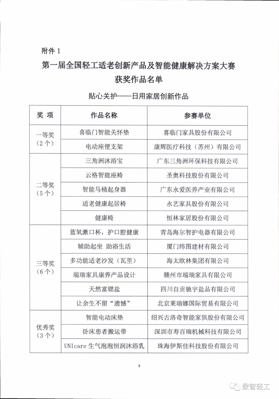 第一届全国轻工适老创新产品及解决方案大赛获奖作品公示