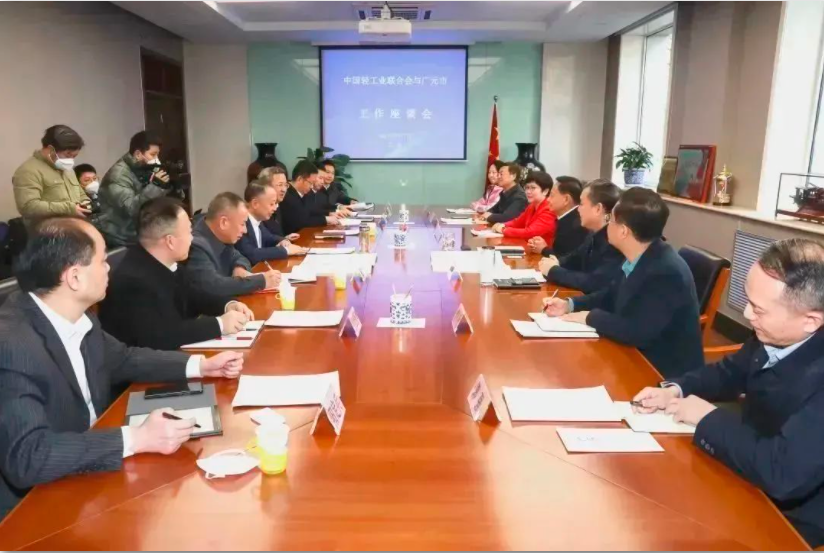 2月7日, 党委书记、会长张崇和会见了广元市委书记何树平一行,双方就深化轻工产业合作,推动广元市轻工业高质量发展深入交换了意见,达成合作共识。中国轻工联党委副书记兼中国家具协会理事长徐祥楠、中国轻工联副会长何烨、秘书长郭永新;广元市委常委、秘书长杨浩,广元市委常委、统战部长陈正永参加会谈。